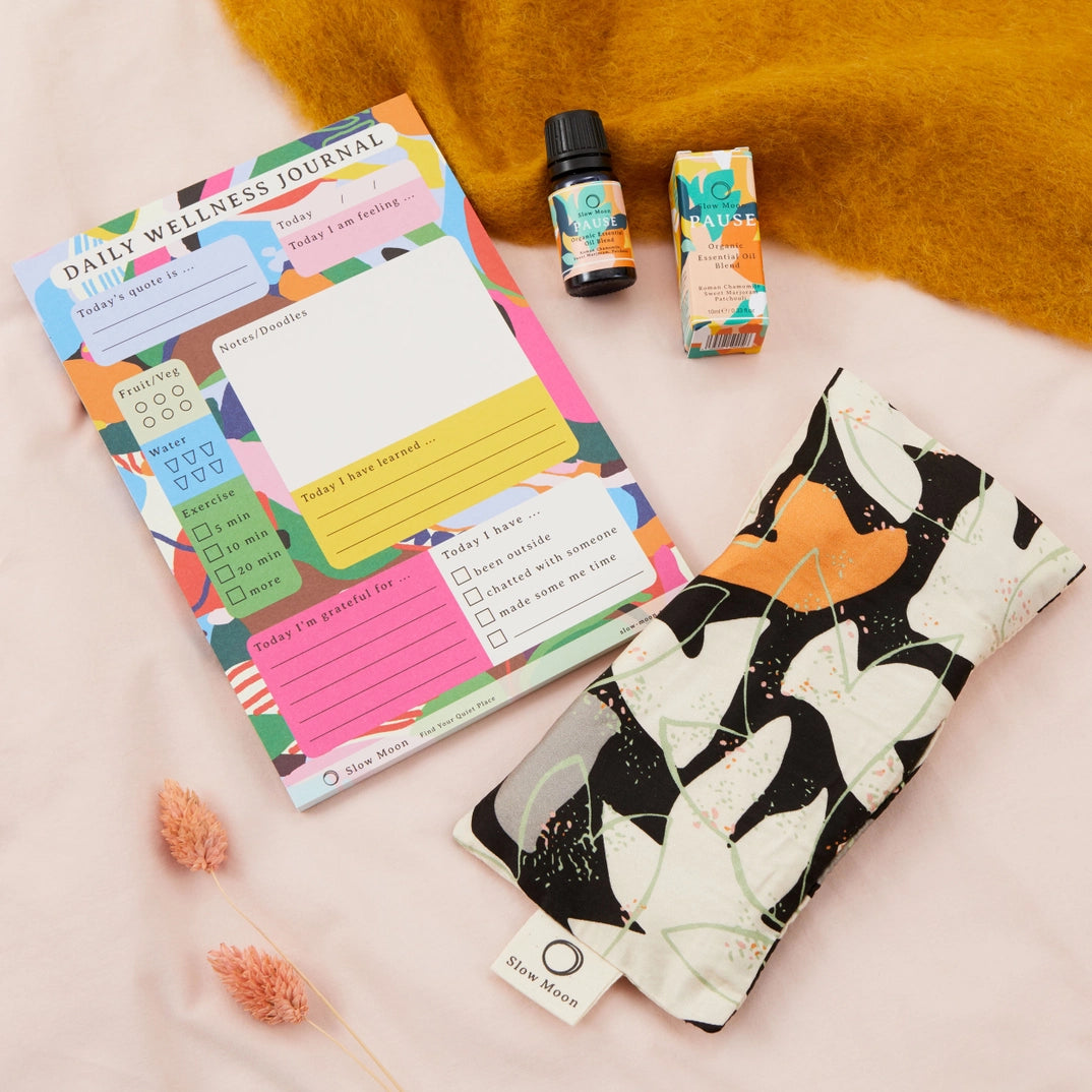 Containing an organic cotton eye pillow, organic essential oil, and a daily wellness journal, this kit has all the essentials to relax your body and mind, the perfect gift for anyone to progress on their wellbeing journey.